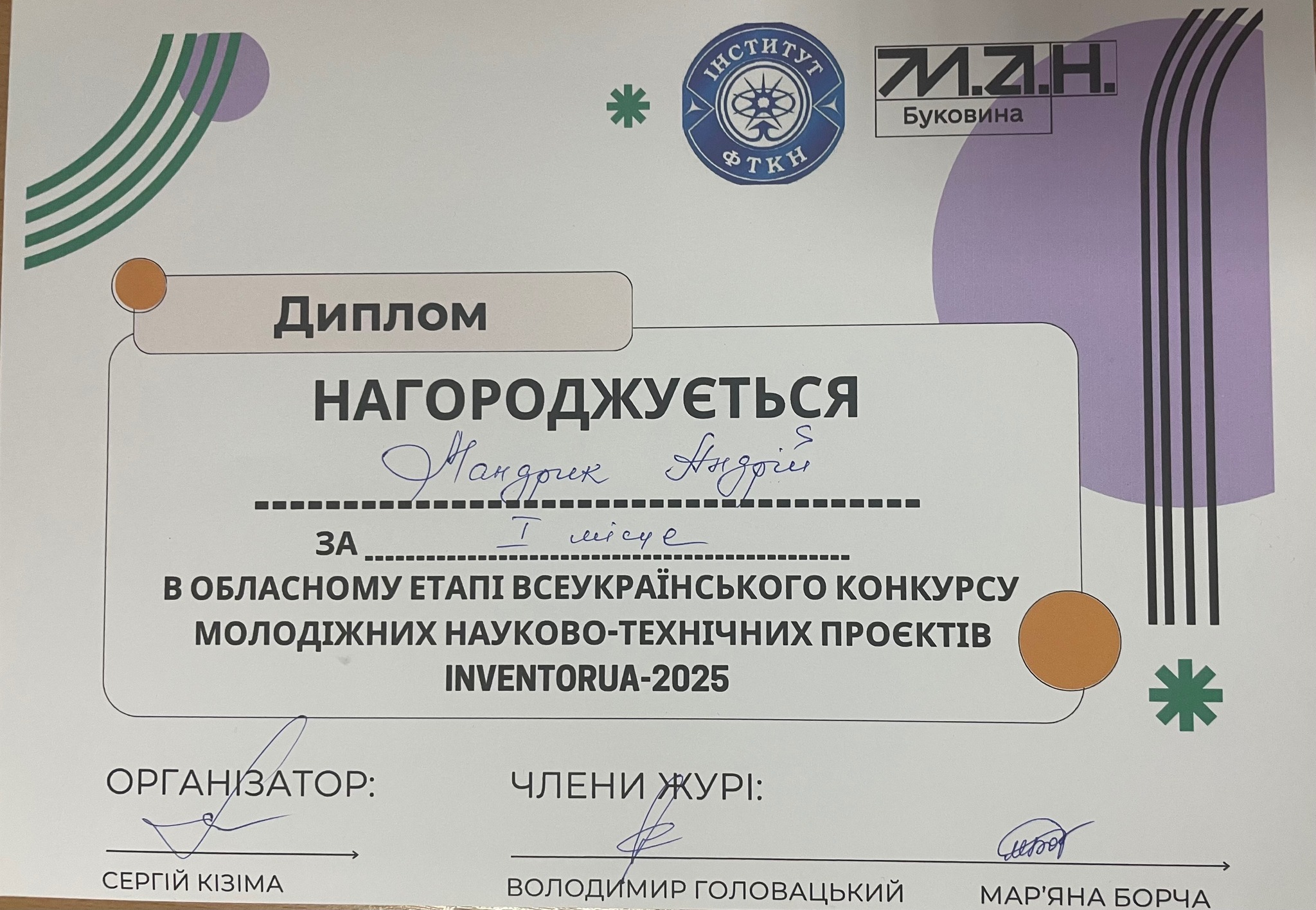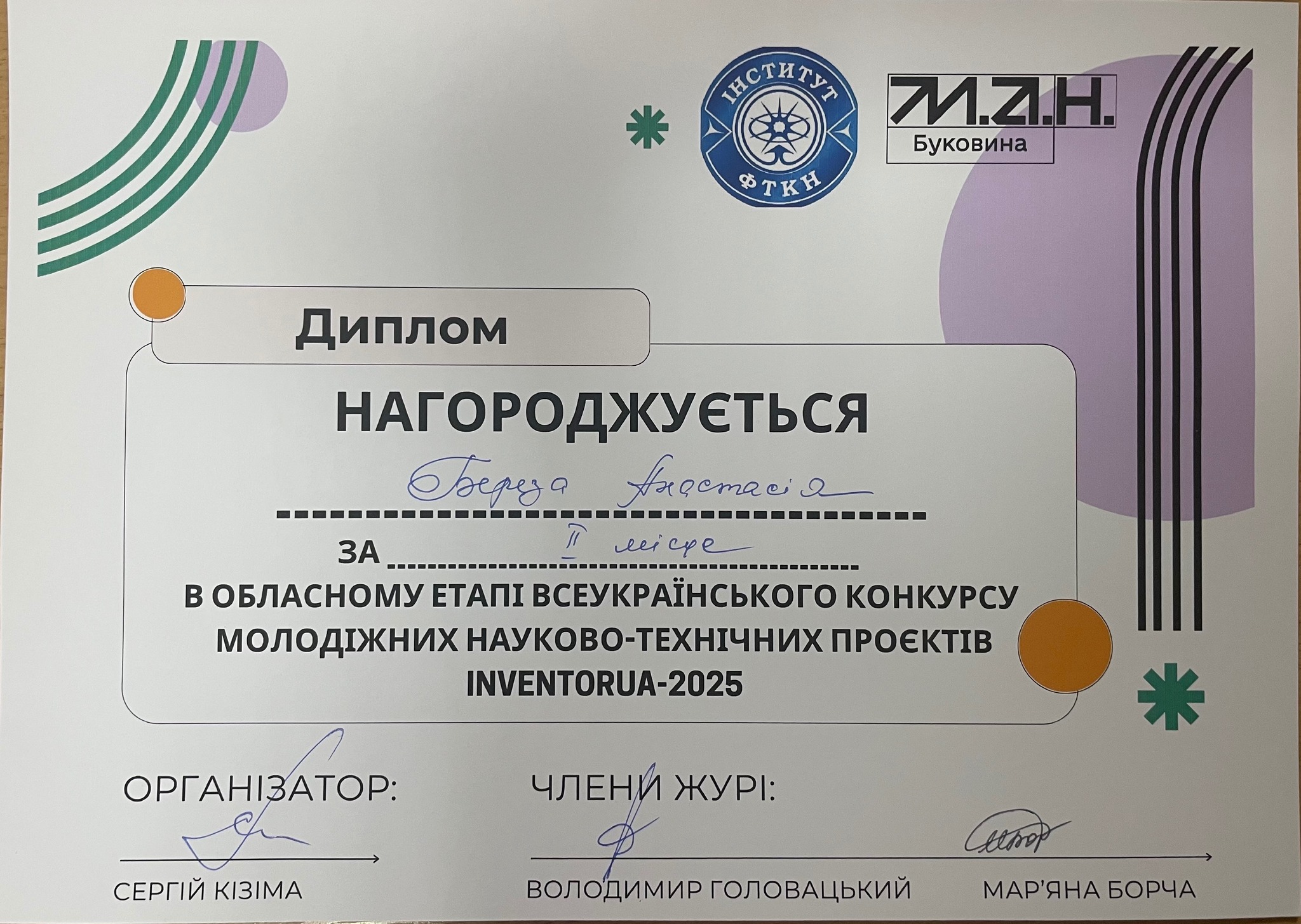 на обласному етапі Всеукраїнського конкурсу молодіжних науково-технічних проєктів «Inventor 2025»!