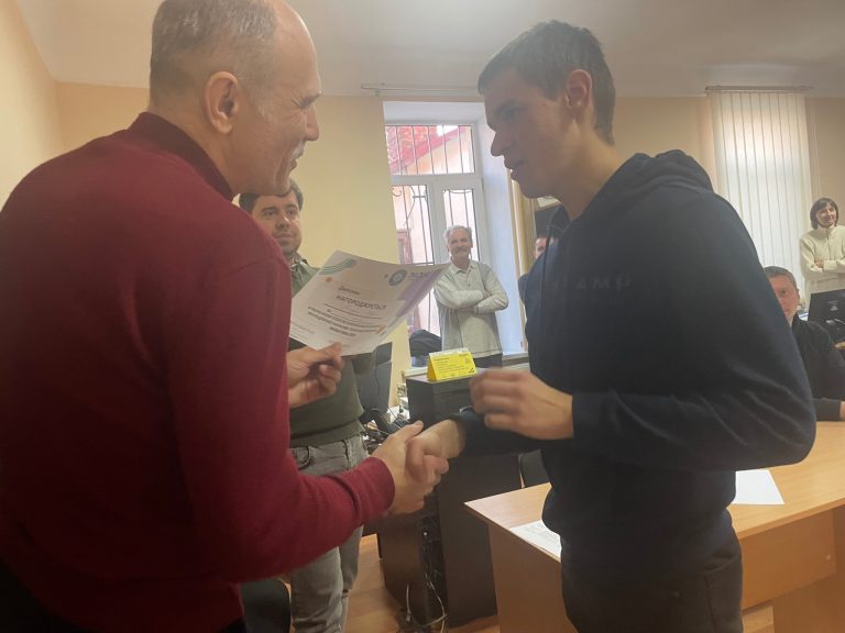 Його феєричний виступ вразив усіх присутніх, а журі відзначили Андрія як «хлопця, у якого і постер, і голова — сповнені формулами та ідеями» – неймовірний захист, неймовірний проєкт — справжня гордість нашого Центру!