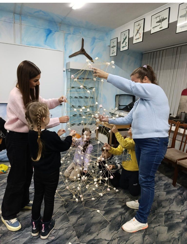 Вже кілька років поспіль цей день ми зустрічаємо креативом, експериментами та веселими STEM-конструкціями. Наші вихованці гуртка «Ракетомоделювання» і «Дизайн» під керівництвом Ольги Косило теж приєдналися до ініціативи та з ентузіазмом будували вежі з шашличних шпажок і маршмелоу.