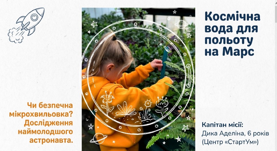 Шестирічна Аделіна любить експериментувати… Учасники конференції дізналися про скарб у Космосі. «Музика в Космосі – універсальна мова», – довів нам дослідник Лев, якому 7 років. Український народний музичний інструмент – бандура – передає звуки зоряного неба…